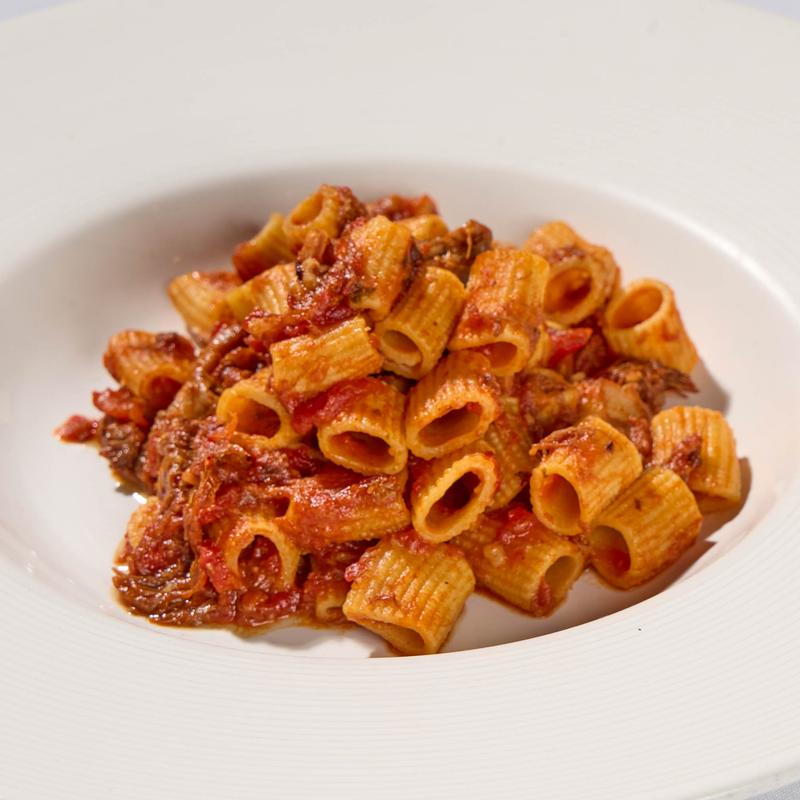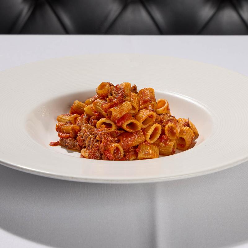 Braised oxtail, smoked pancetta, onion, tomato sauce.