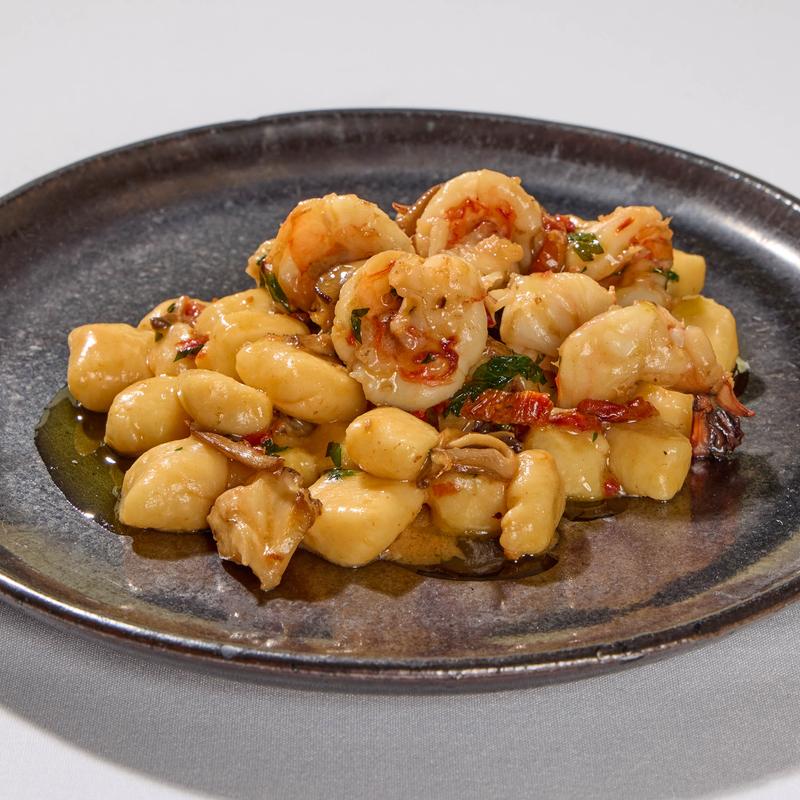 Homemade gnocchi, USA wild shrimp, smoked dried tomatoes, mushrooms.